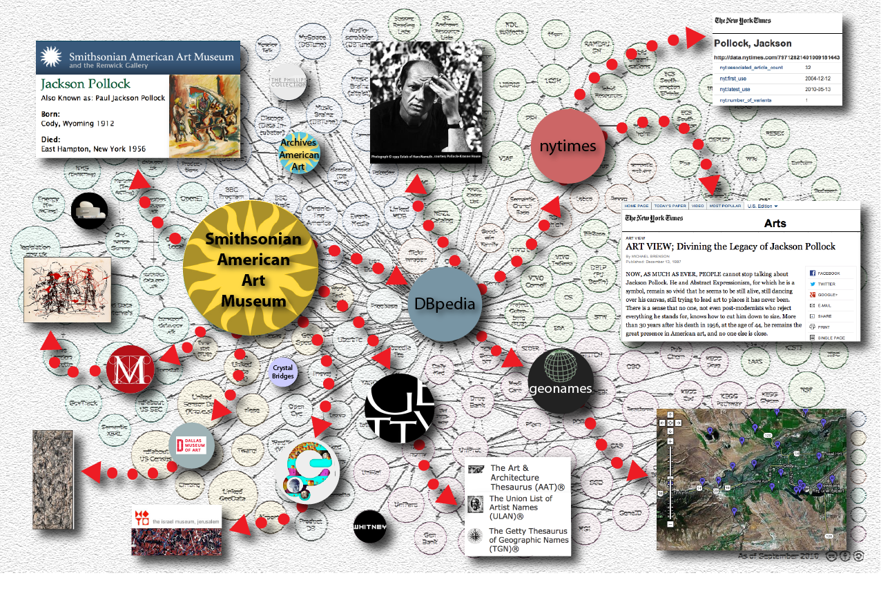 You can read more about this effort: Connecting the Smithsonian American Art Museum to the Linked Data Cloud .Szekely, P.; Knoblock; A, C.; Fengyu, Y.; Zhu, X.; Fink, E.; Allen, R.; and Goodlander, G. 2013.In Proceedings of the 10th Extended Semantic Web Conference, Montpellier, May.http://www.bibbase.org/cache/www.isi.edu_integration_karma_karma-bib.bib/Szekely:2013vq.html