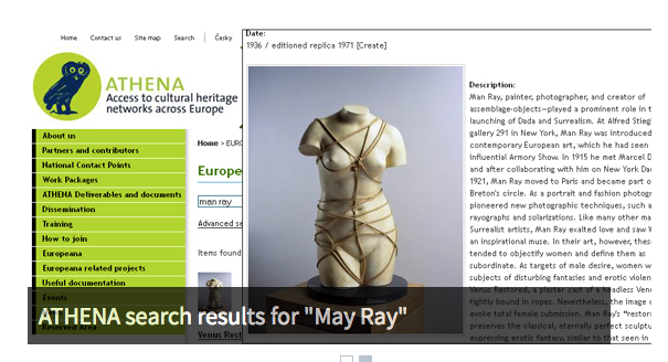 ATHENA is a project developing metadata exchange standards for the museum domain and aggregating museum content for Europeana. Through our API, they have built a search service where users can perform keyword searches and structured searches to find and view Europeana items.