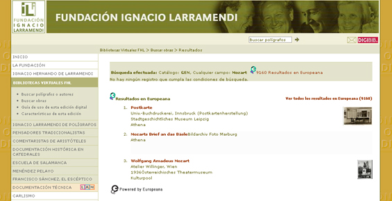 This API complements search results within the digital library of the Larramendi Foundation with results from Europeana.