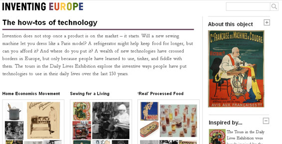 The Inventing Europe website currently offers 6 exhibitions and 34 tours. Each tour is a collection of 4 to 6 stories and outlines an aspect of the history of technology in Europe. The exhibitions group together a few tours around a specific technology theme, such as Daily Lives, Media & Communications, Knowledge Societies, Infrastructure, Globalisation & Governance.